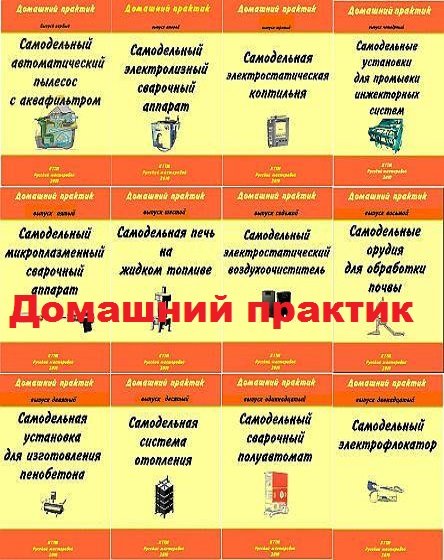Серия 12 выпусков - "Домашний практик" описывает изготовление различных самодельных устройств для дома и дачи. Для каждого устройства даны подробные чертежи, описания, схемы и технологии сборки.